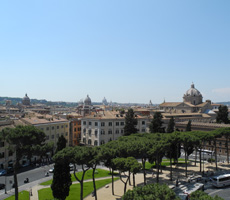 Отдав дань памяти у могилы неизвестного солдата, мы двинулись далее на холм Капитолий, где стоит оригинал статуи императора Марка Аврелия 2 века н.э., а лестницу Кордоната спроектировал Микеланджело.Зашли в церковь Санта-Мария-ин-Арачели, где хранятся мощи св. Елены, признанной равноапостольной и насладились панорамным видом на Рим с высоты Капитолия.